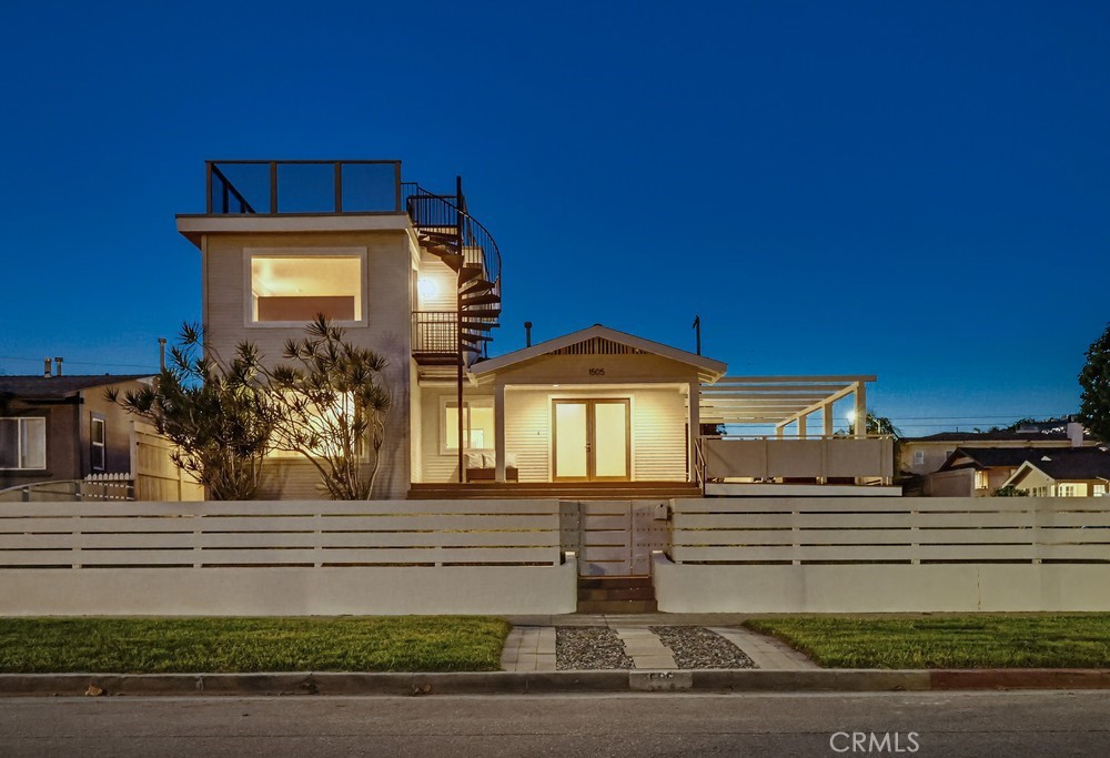 Old world charm meets refined modern luxury in this exquisitely updated and re-imagined 1920s Craftsman, prominently positioned on an elevated corner lot in the highly desirable Vista Del Oro neighborhood. With commanding curb appeal, a fully fenced yard that gracefully wraps around the property, and a welcoming covered front porch perfect for quiet mornings or sunset evenings, this home offers warmth and elegance from the moment you arrive. Inside, timeless architecture blends seamlessly with sophisticated contemporary design. Light wood laminate floors flow throughout, complemented by recessed lighting, smooth walls and ceilings, and bull-nose corners that create a clean, polished aesthetic. The designer kitchen is both striking and functional, featuring high-gloss white and gray cabinetry, sleek quartz countertops, and a thoughtfully designed layout ideal for both casual meals and elevated entertaining. The sun-drenched living and dining areas are framed by three sets of French doors that open effortlessly to a spacious deck, creating a seamless indoor-outdoor experience that feels both expansive and inviting. The lower level offers exceptional versatility with an office area, guest bedroom, a beautifully remodeled full bath finished with quality materials and a laundry closet. Upstairs, the primary suite is a true sanctuary, showcasing captivating harbor, mountain, and sparkling city light views. A generous walk-in closet and spa-inspired bath elevate the experience with a body massage shower and jacuzzi tub. Electronic blackout shades provide ultimate comfort and privacy. A dramatic spiral staircase leads to the rooftop deck with sleek glass railing, where breathtaking 360-degree views stretch from the hills of Palos Verdes to the Pacific Ocean, offering an unforgettable backdrop for relaxing under the stars. Designed for comfort, efficiency, and peace of mind, the home includes central heating and air conditioning, a tankless water heater, copper plumbing, 200-amp electrical service, dual-pane windows, a retrofitted foundation and a cozy "Soft Spa". Gated driveway parking and a one-car garage with a dedicated work area add both convenience and functionality. As an added bonus, nearly all furnishings and appliances are included (excluding staging items), presenting a rare opportunity to own a truly turnkey residence or create a high-end short-term rental in one of the area's most sought-after neighborhoods.