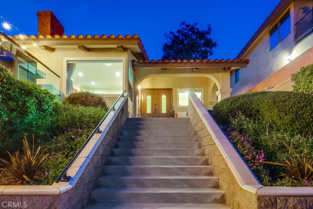 This in not your typical rental home by any stretch. If you are a discerning tenant seeking a refined, low-maintenance coastal lifestyle, this Mediterranean-inspired villa delivers on every level. Nestled on a quiet cul-de-sac in the coveted Upper South Shores, the home enjoys unobstructed ocean and Catalina Island views from nearly every main living space. Cool afternoon breezes complete the relaxed, elevated feel of this special property. Completely reimagined with a focus on quality, this home offers timeless sophistication. It's not for someone chasing fleeting trends--no stark whites or grays here. Instead, rich natural finishes and craftsmanship take center stage. Designed for those who value elegance and ease over excess outdoor space, this residence is effortless coastal living at its finest. Curb appeal is instant. A wide stone staircase leads through lush, manicured landscaping to a covered front porch trimmed in natural stone. Smooth stucco, a red tile roof, and patina copper accents complete the classic Mediterranean exterior. Through the double-door entry, you're welcomed by soaring 10-foot ceilings and a large coat closet in the foyer. The formal living room features vaulted ceilings, a natural stone fireplace, built-in bookshelf and a large picture window showcasing panoramic views. An arched opening leads into the formal dining area and the upgraded kitchen, outfitted with custom wood cabinetry, granite countertops, walk-in pantry, and a travertine backsplash. Stainless steel appliances include a six-burner cooktop, counter-depth refrigerator, double oven, dishwasher, and custom hood. The adjacent family room offers a second fireplace, attractive tray ceiling, and sliding glass doors that open to a 600+ sq ft deck. With frameless glass railings and jaw-dropping views, it's an ideal spot to relax or entertain. The private wing includes a spacious primary suite and two additional bedrooms, all with vaulted ceilings, wide-plank hardwood floors, and generous closets. Both bathrooms feature natural stone, granite, and custom cabinetry. A large indoor laundry room adds ample storage, a utility sink--and even an ocean view. Crown molding, Baldwin hardware, designer lighting, recessed lighting, and a spotless three-car garage complete this truly special home. HOME IS ALSO FOR SALE AT $1,389,000, MLS#SB25161555.