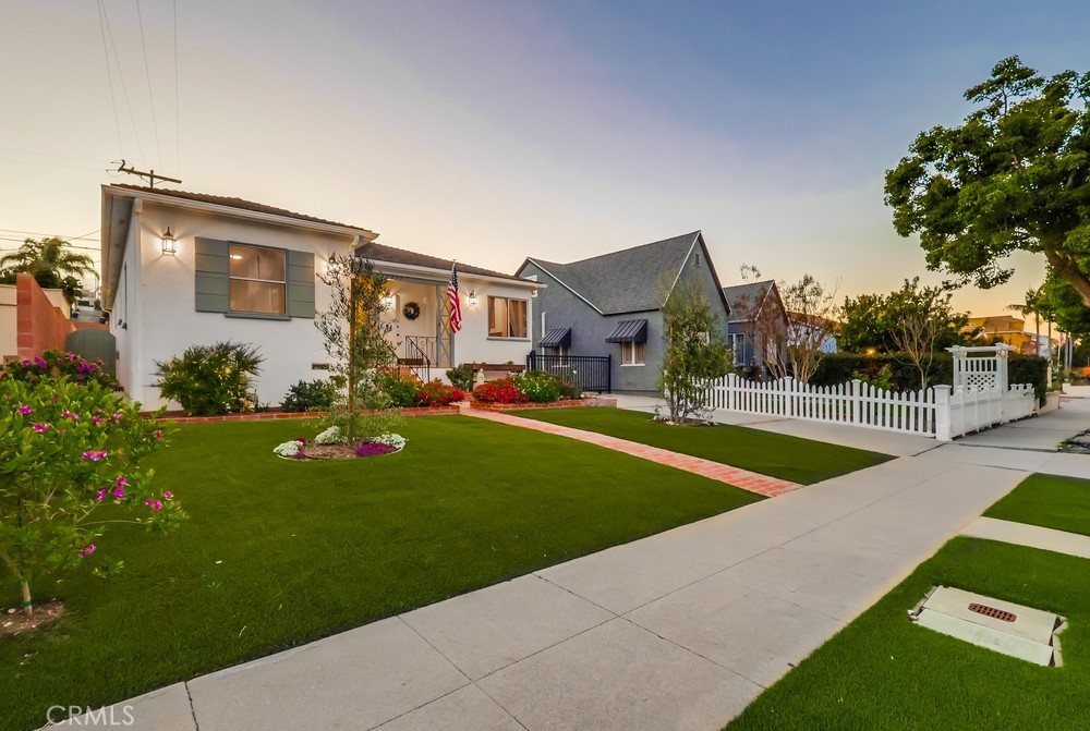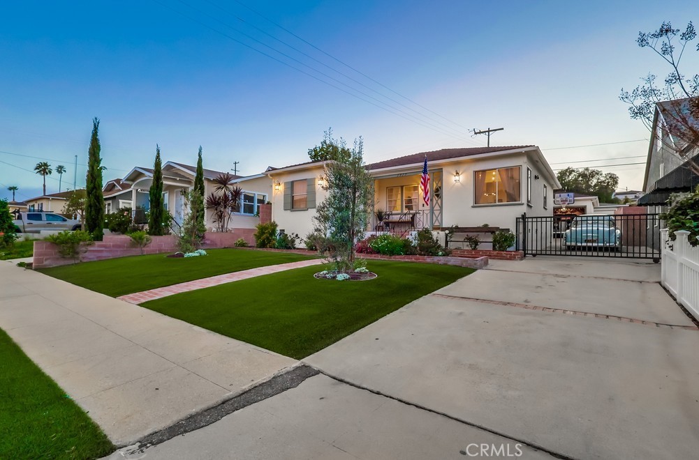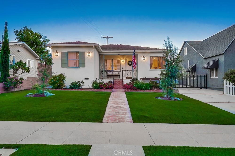 HONEY, STOP THE CAR!! That's how you'll feel when you drive by this charming 1940's cottage and it grabs you with it's amazing curb appeal. You'll be captivated by the lush green artificial turf that is framed with colorful planters and vibrant trees as you make your way to the covered front porch that is a great place to enjoy a cup of coffee before getting your day started. Upon entering through the front door into the living room you'll notice the fusion of the old and the new that creates a very bright and inviting living environment. The open design combines the living area, recently remodeled kitchen and dining nook to create an atmosphere that is both aesthetically appealing and functional. The incredible kitchen is definitely the heart of this special home and features custom cabinetry, an island with breakfast bar, cooktop and oven, stone accent wall and quartz counters. Running throughout the home is wide-plank French Oak style wood-laminate flooring that is as attractive as it is easy to maintain. The main hall leads you to the bedroom area where you'll find the two secondary bedrooms and a nicely appointed full bath with jetted tub, pedestal sink and built-in linen cabinetry. The spacious primary suite offers a 3/4 bath and a newly installed closet system. The laundry equipment has also been cleverly tucked into the 3/4 bath for convenience. The rear yard includes a covered patio with bistro lighting and a grassy area (turf) that is plenty large enough to accommodate a jumper for backyard Bday parties. There's a one car garage and driveway parking for another 3-4 cars. To keep the home comfortable year round there is a central heat and air conditioning system. This home is also located in an area that enjoys one of the best micro-climates San Pedro has to offer. If you're looking for a home with all the character of a Classic San Pedro home and the conveniences of a modern one, this home could be for you. HURRY!